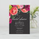 Moody Luxe Floral Vibrant Pink Black Bridal Shower Invitation