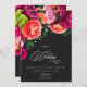 Moody Luxe Floral Vibrant Pink Black Wedding Invitation