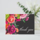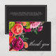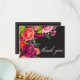 Moody Luxe Floral Vibrant Pink Black Wedding Thank You Card