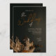 Moody and Dark Modern Boho Rustic Dried Flowers Wedding Invitation. This wedding invitation has a high resolution, real photo image of dried floral bouquet and pampas grass as a background. Dark and moody colour palette of ivory, gold, black, and forest green coupled with modern typography. The back has space for a monogram. All text is editable, just click the personalise button to the right of the image. Check out the matching items in the collection for your event!