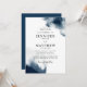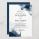 Elegant wedding invitation template card featuring watercolor splash in navy blue colour. Customise this invite by adding your own wedding information. Perfect for a fall or winter wedding.