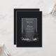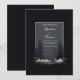 Capture the moody romance of a misty woodland evening with this striking high-contrast design. A crisp white rectangular frame acts as a window into a serene forest scene, featuring the hazy grey silhouettes of towering pine trees against a deep, velvety black backdrop. At the base, a lush meadow of white daisy wildflowers is nestled among vibrant autumn-toned shrubs in shades of burnt orange and deep crimson, adding a touch of warm, organic colour to the monochrome landscape. This aesthetic perfectly balances modern minimalist lines with the quiet, untamed beauty of nature. This wedding invitation is a premier choice for moody autumnal ceremonies, formal evening forest weddings, or sophisticated black-tie celebrations with a Nordic nature theme. It sets a grounded, atmospheric tone for couples wanting to blend high-end minimalism with a rustic, enchanted vibe.