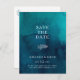 This moody ocean watercolor save the date postcard is perfect for your simple tropical boho wedding. It is designed with minimalist white tropical leaves and a stunning dark blue-green background.