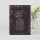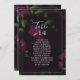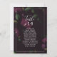 These moody pattern table number seating chart cards are perfect for a modern wedding. The elegant floral design features dark plum purple tulip flowers with emerald green leaves. The card prints on the front and back (double-sided).