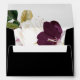 This moody purple blooms black wedding invitation envelope is perfect for a modern wedding. The elegant floral design features dark plum purple and white tulip flowers with emerald green leaves and gold leaf accents. Personalise the envelope flap with your return address. These envelopes can also be used for a bridal shower, rehearsal dinner, or any special event.