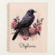 Set the tone for a dark academia aesthetic with this personalized daily planner. This moody design features a detailed black crow illustration perched among vintage pink roses rendered in a dusty rose and charcoal palette. It is a perfect way to stay organized or a thoughtful gift for a stationery lover.