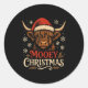 Mooey Christmas Highland Cow Funny Santa Hat Desig Classic Round Sticker