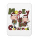 Two cows in red stocking caps, Christmas gifts, holiday lights, candy canes, and text that reads "Mooey Christmas" on holiday T-shirts, mugs, cards, stickers, tote bags, wall clocks, keepsake boxes, ornaments, keychains, and other cute cow theme holiday apparel and gifts.