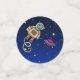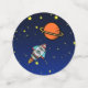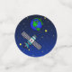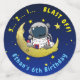 Moon Adventure Birthday Confetti feature an astronaut posing from a crescent moon, with stars around him. Space stations, astronauts, planets and stars. Customisable Curved text above the astronaut says, "3...2...1... Blast Off!". Customisable text below says, "Ethan's 6th Birthday".