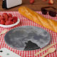 The dark shape of a wolf howls in front of the full moon, perfect for any Halloween table, or even just for treats. Is he hungry? Is he on the hunt? I think you'd better put something on the plate before he decides to devour you!