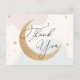 Thank your guests for celebrating the mama to be! Moon and Stars themed baby shower thank you postcard features watercolor clouds and gold stars with gold glittery moon. Personalise with your information or click "Click to customise further" to edit font styles, size and colours.