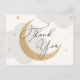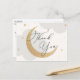Thank your guests for celebrating the mama to be! Moon and Stars themed baby shower thank you postcard features watercolor clouds and gold stars with gold glittery moon. Personalise with your information or click "Click to customise further" to edit font styles, size and colours.