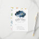 These Moon and Stars Boy Baby Shower RSVP are perfect for a simple baby shower. The modern whimsical design showcases a navy-blue watercolor cloud shape adorned with a yellow crescent moon and scattered stars.