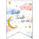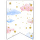 The use of watercolor blue and pink clouds creates a soft and dreamy backdrop for the glitter moon and star, which adds a touch of magic and whimsy to the overall design. The inclusion of bunting flags with the words "Boy or Girl" adds a playful and festive element to the design, making it perfect for a Gender Reveal Party. The combination of the soft colours, glitter accents, come together to create a truly stunning design. The watercolor technique used in this design creates a sense of movement and fluidity, adding to the dreamlike quality of the clouds and stars. The glitter accents add a touch of glamour and sparkle, while the calligraphy font used for the bunting flags adds an elegant and sophisticated touch. Matching items are available.
