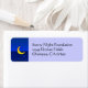 A custom address label with elegant vintage art of a starry evening night with a glowing crescent moon against a dark blue sky. Add your own address or delete the text for a blank label. Click Customise It to change fonts, sizing, change background colours and more.