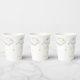 Twinkle twinkle little stars themed paper cups featuring gold moon and stars and grey clouds.