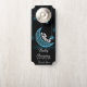Sweet and dreamy moon and stars design on personalised nursery or baby's room door hanger. Warning for baby sleeping on one side and personalised with your baby's name on the other.