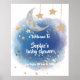 Set the tone for a dreamy celebration with this beautifully designed poster welcome sign, perfect for a moon and star-themed baby shower. Featuring an elegant watercolor blend of royal blue and gold abstract swirls, this sign shimmers with twinkling stars and a soft, glowing crescent moon that brings the night sky to life.