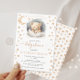 Celebrate the upcoming arrival with this adorable celestial baby shower invitation, showcasing a delightful cute watercolor sleeping teddy bear in between Moon and stars. The elegant golden message, "We can bearly wait," adds a touch of sweetness to the invitation, setting the perfect tone for the joyful occasion.