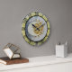 This clock features a moon and sun against a light blue background. It is surrounded by antique coloured frame with black coloured numbers wrapping around it. Perfect for those who enjoy celestial, cosmos, or space decor.