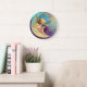 MOON ANGEL IN GOLD BLUE SPARKLES LARGE CLOCK