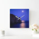 Moon At Dusk | Perce Rock Gaspe Coast Quebec Square Wall Clock