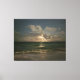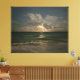 Moon behind clouds over ocean with waves canvas print