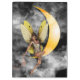 A Beautiful fairy sitting on the orange moon among the clouds scattering fairy dust. Available on multiple background colours for most products.