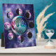 Bring celestial beauty into your space with this Moon Phase Chart Easel Print, featuring the phases of the moon and a radiant Tree of Life at the center. This mesmerizing design combines cosmic elements and nature, showcasing detailed moon phases labeled with their names (New Moon, Full Moon, etc.), surrounded by a starry galaxy background in vibrant purple, blue, and teal hues.
