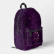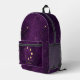 Celestial design theme backpack features gold moon phases circular illustration on background of purple starry galaxy night sky. Customise with name, monogram, or other special message.