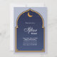 Crafted with premium quality cardstock, this invitation features a beautiful golden crescent moon design against a deep blue background, symbolising the importance of the moon sighting during Ramadan. The intricate Arabic calligraphy adds a touch of traditional charm, while the minimalistic yet stylish design makes it perfect for any kind of celebration.