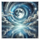 A beautiful addition to any home, this blue moon is reflected in the clear water below. This unique design brings the magic of moonlight to any room.