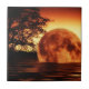 A beautiful full moon falling from the sky into a peaceful flowing river.