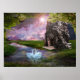 Moon River.. - Canvas print. Manipulated photography. Romantic scene of two swans on a moonlit river, beside ruined castle.