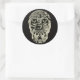 This image is a skull that looks like a moon with many different images of things that happen on all hallows eve. The more you look, the more you will find in this images within a image.