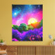 Abstract artistic landscape inspired by Space and tropic nature. Blend of magical colours like purple, green and pink. Ideal style for living room, bedroom or children's room.