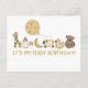 Cute baby's first birthday design tshirts, bodysuits, mugs, cards, stickers, bags, and more with moon, stars, a duck, bear, giraffe, baby bottle, and balloon.
