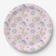 Moon, Stars and Clouds Pattern on Pink Paper Plate