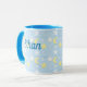 Moon and stars in soft yellow over a light blue sky background. Perfect for kids and babies, but good for anybody and anywhere.