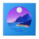 Moon, Stars Sea and Mountains in Violet and Blue Tile