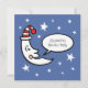 An illustration of the moon in his night cap surrounded by stars in a clear night sky.