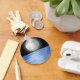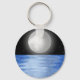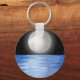 A glowing moon reflecting on serene blue waters with a black sky and twinkling stars. An orginal digital art design.
