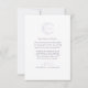 At the centre of the card is a crescent moon adorned with delicately intertwined leaves, forming a whimsical celestial wreath that encapsulates a monogram. This personalised touch elegantly combines the couple's stylish simple initials, creating a unique and sophisticated emblem that symbolises the unity and gratitude of two souls connected through a celestial journey.
