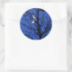 Moon with Tree, Cobalt Blue, Black and White Classic Round Sticker