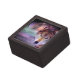 I am so pleased with this little trinket box! The website photo doesn't do it justice. The photo on top is so glossy and beautiful! The colors are awesome. The lid and the box both have 2 little magnets so that the lid stays on, which I love. It arrived in good time. My 11 year old granddaughter is going to love it. Many thumbs up! There was no printing on this item, but the colors in the photo of the box lid are beautiful and vivid.