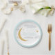 Add a starry touch to your celebration with these Moonbeams and Baby Dreams paper plates, featuring soft grey, pastel baby blue, gold, and white tones—perfect for a more subtle boy baby shower. Beautifully designed with whimsical moon, showering heart clouds and star artwork by Sarah Trett for www.mylittleeden.com, these premium-quality plates bring charm and elegance to your table setting while keeping cleanup simple. Stylish, practical, and unique—an ideal addition to your celestial-themed baby shower!