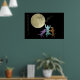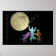 3 dogs dance with wild abandon under a whistling man in the moon.