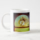 The frosted glass adds a touch of elegance, allowing the moonlight to reflect off its surface, creating a beautiful dance of light and shadows. As you gaze at the mug, you can almost envision the surrealistic scene unfolding before your eyes, with clowns leaping gracefully under the moon's gentle glow.