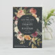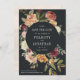 Our modern floral Moonlight Garden save the date card frames your key wedding details, including date and location, inside a lush botanical border of watercolor roses mums, green leaves and foliage. Dusty autumn hues of burgundy, marsala, blush and ivory pop against a soft off-black background. Personalize with your names, wedding date, location and wedding website using the fields provided.