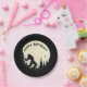 A sasquatch howling at the rising moon decorates this paper plate